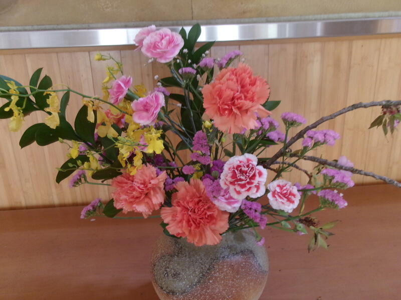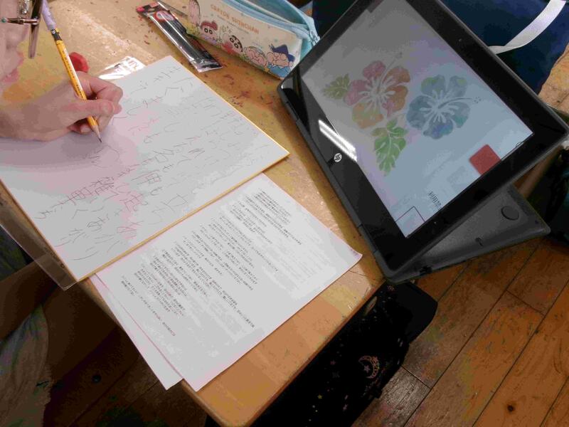 【6年3組:色紙を利用し、詩を書き、そこに花を選んで描いていました。】