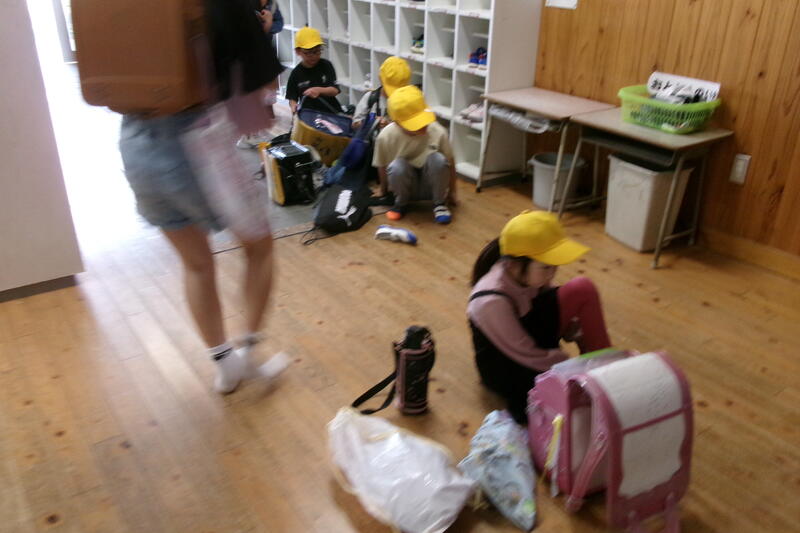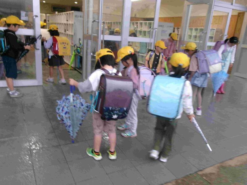 保護者の皆様、月曜日の1年生の靴箱は、混雑することをご存じですか。それは、上靴を金曜日に持ち帰り、月曜日に持ってきます。上靴入れから取り出し、床に座ってはきます。とてもかわいらしい光景ですよ。