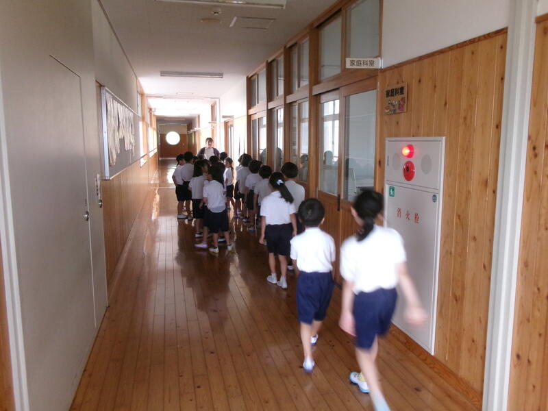【1校時目、1年生は学校探検をしました。主に家庭科室や音楽室など特別教室等を見てまわりました。】