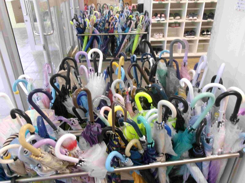 【雨の日の児童靴箱は大変です。さしてきた傘を、きれいにたたまなければなりません。そうしないと、クラスの傘立てに入りきれないからです。一人一人傘をくるくると回し、細くしていました。】