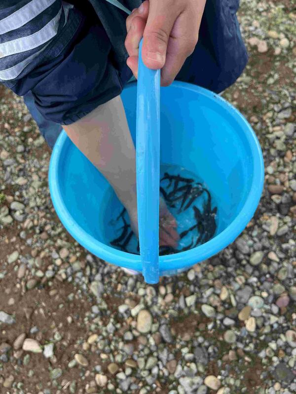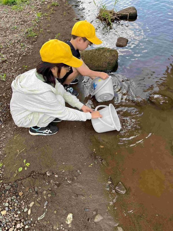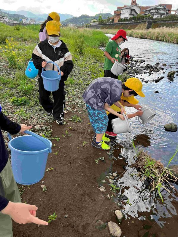 【本日1校時目、2校時目をつかい、4年生はあゆの体験放流に出かけました。場所は御船橋下河川敷です。緑川漁業協同組合の皆様の協力のもとにおこなわれました。日ごろなかなか体験できない活動です。お世話になりました。】