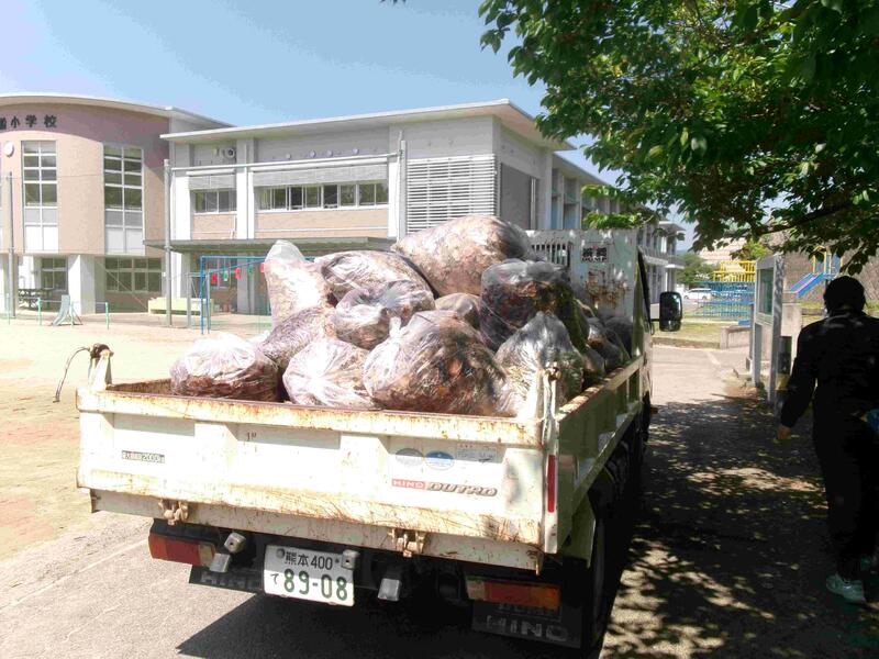 【家庭訪問お世話になっています。本日午後から、木山校長先生を中心に7年部の先生方と、大楠の枯葉をトラックに積み、クリーンセンターに運びました。】