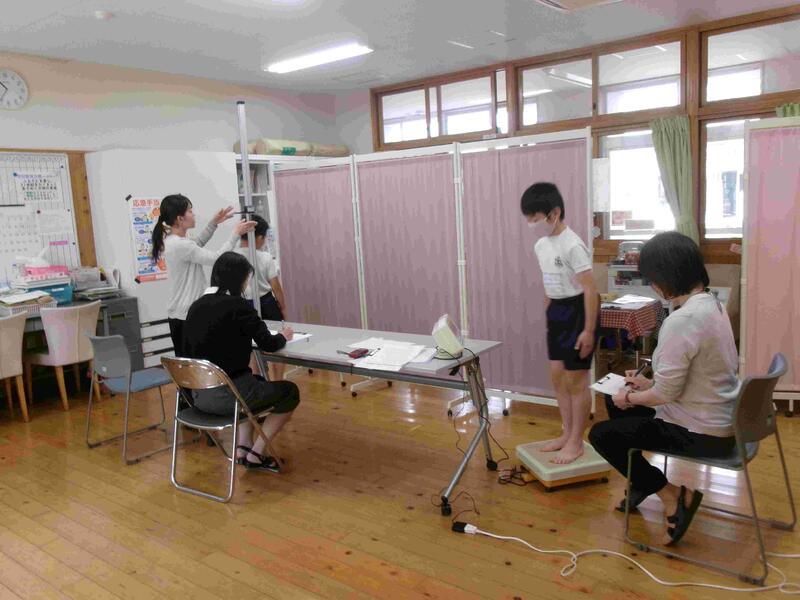 【4年生、5年生、6年生の発育(身長・体重)測定と視力検査がおこなわれました。】