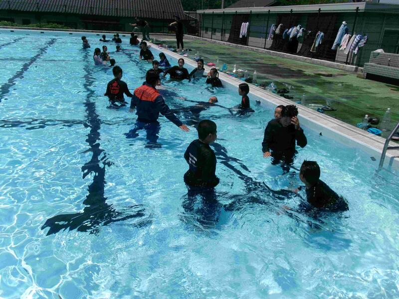 本日で水泳の授業が終了しました。夏休みのプール開放もありません。2学期の水泳の授業もありません。今日は6年生の着衣水泳がおこなわれました。上益城消防署の皆様に来校していただき、着衣をつけたときの浮く方法などを教えていただきました。暑い中ありがとうございました。6年生児童の感想です。「服をきたままだと、体が沈んでいったので驚いた。」「体がとても重かった。」「ペットボトルをつかったら、簡単に浮いた。」「水の中で自由がきかなかった。」など感想を言ってくれました。6年生の保護者の皆様、着衣水泳の感想を子どもさんに聞いてみてください。上益城消防署の皆様お世話になりました。