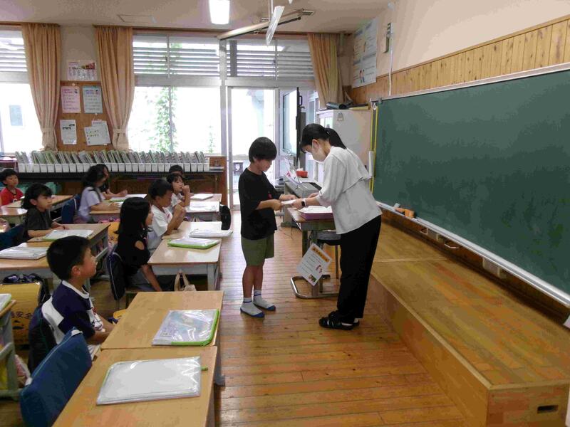 【3校時目は学級活動です。夏休みのくらしや学習などについて説明があっていました。最後に通知表渡しがありました。1年生ははじめての通知表です。映像は1年生です。】