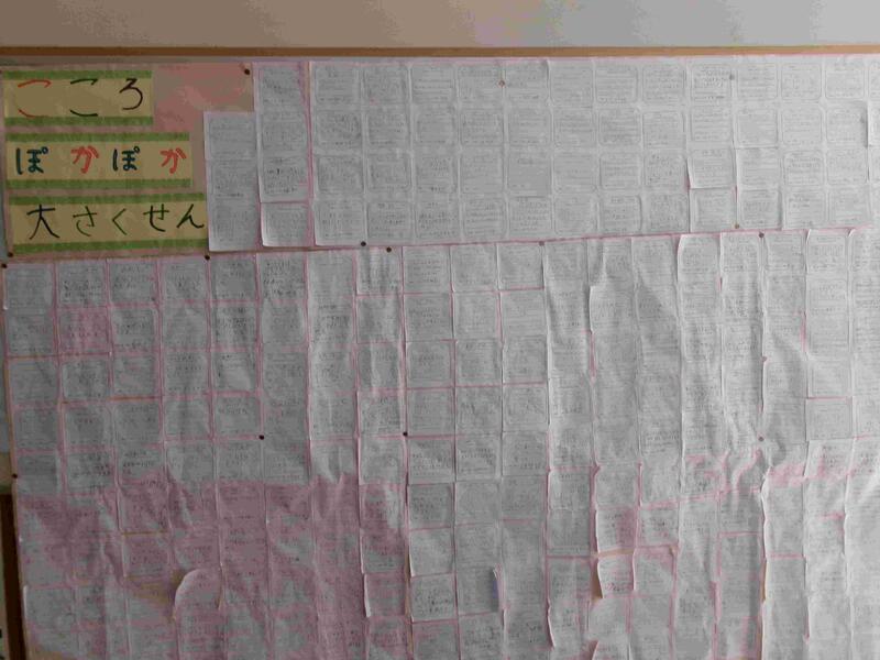 【学校便りNO9にも紹介してありましたが、なかよし学級3・4教室前に、「友だちのやさしいところ・いいところ紹介」の掲示物です。掲示してある文の一部を紹介します。「〇〇さんはだれともなかよくしますね。〇〇さんのやさしいところはわるぐちを言わないところです。」「〇〇さんはおもいやりがあって、元気いっぱいなところがいいと思います。」「〇〇さんは、だれか泣いているとき、いつもだいじょうぶと言って心配してくれるところがやさしいです。」等】