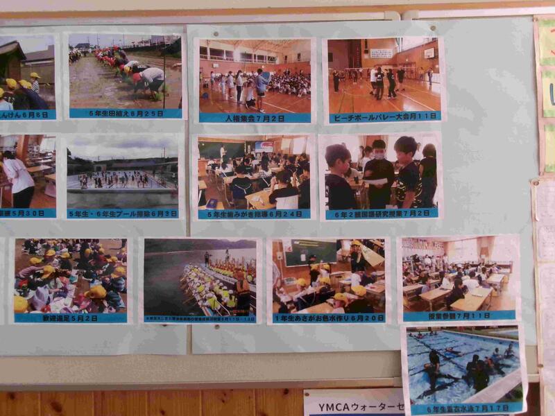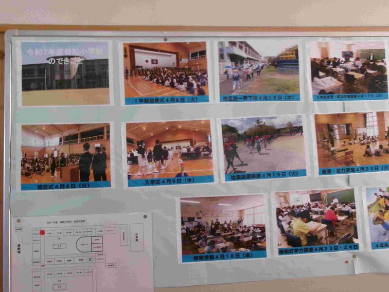 【上記の掲示物の横には、1学期主な行事等の写真が掲示してあります。】