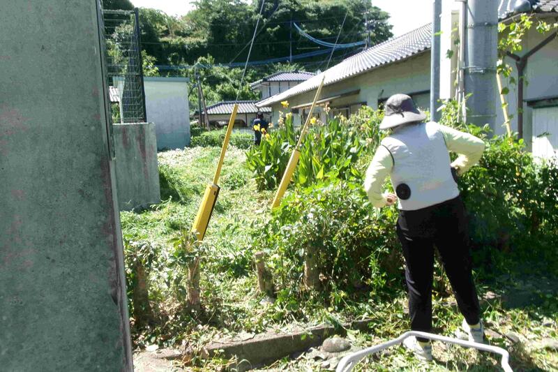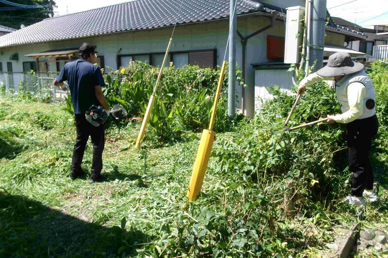 【午前中、プール横(南側)の草刈りを、中川先生、齊藤先生にしていただきました。とても暑い中ありがとうございました。】