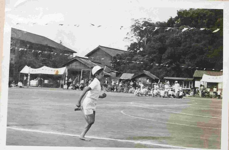 【3回目】学校の施設面等を紹介します。学校敷地内に「宿直室」という建物が建っていました。男性の先生方が交代で、そこに泊まられ、学校の夜の警備等をされていました。その横には「楽焼窯」がありました。その窯を使い、毎年冬になると、「楽焼大会」が実施されていました。給食室は正門を入ってすぐ左手の所にありました。当時は米飯給食はありません。すべてパン(食パンかコッペパン)食です。牛乳は、今のような紙パックではなく牛乳瓶です。運ぶのが重かったですね。ふたは紙でできていました。きりのような物を使ってあけていました。また、そのふたは、遊び道具としても使っていました。今と大きく違うのは、クジラの肉が頻繁(ひんぱん)にでてきていたということです。立田あげのように調理されていました。とてもおいしかったですよ。しかし、すじがよく歯の間にはさまりました。カレーやスパゲッティー、ぜんざいなどもよく出ていました。下記の写真は、私の運動会時の写真です。バックに左から、3・4・5・6年生校舎、宿直室、1・2年生校舎、楽焼窯、体育倉庫が映っています。