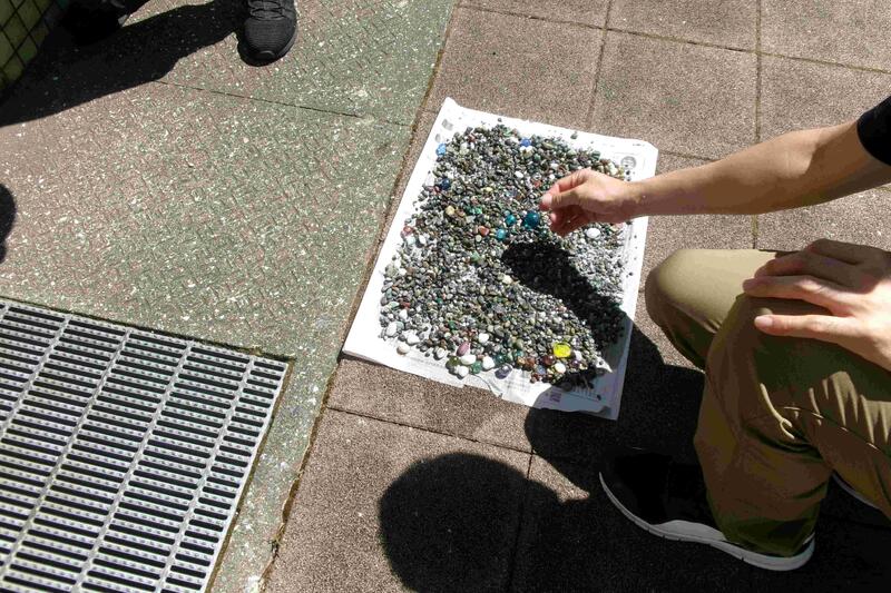【学校では、理科の授業のため、めだかを飼っています。水槽が汚れたので、今日は水槽の掃除をしました。】