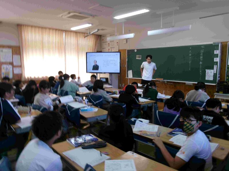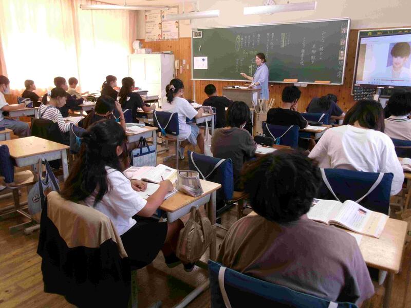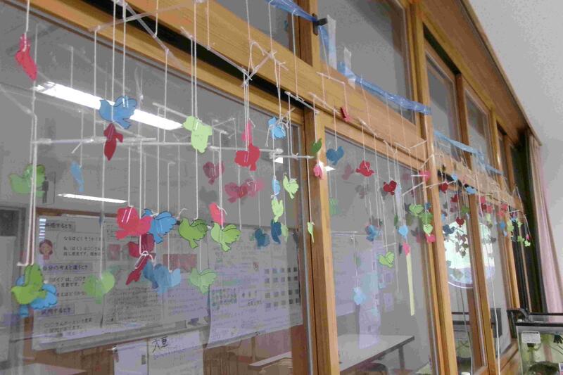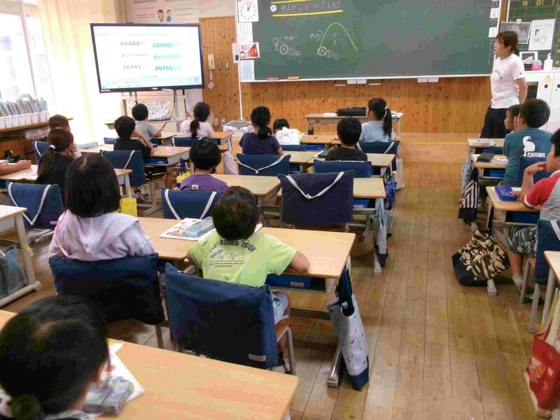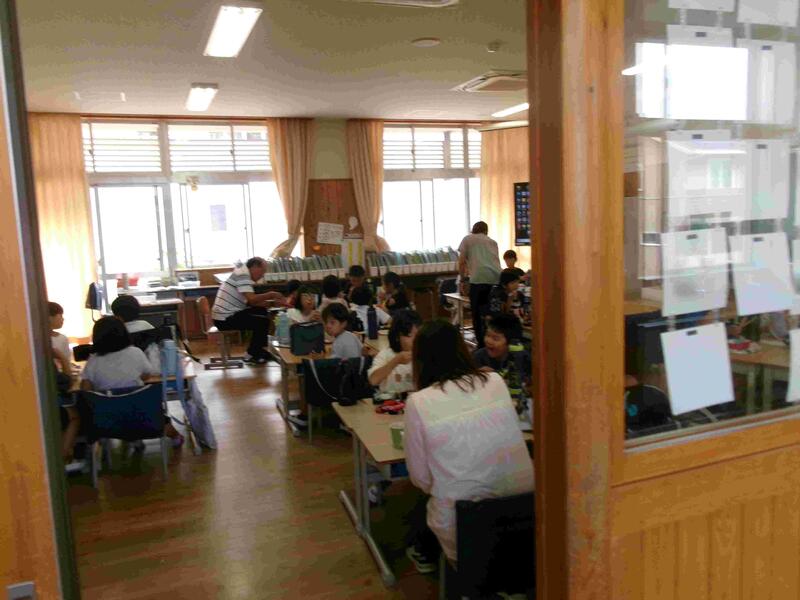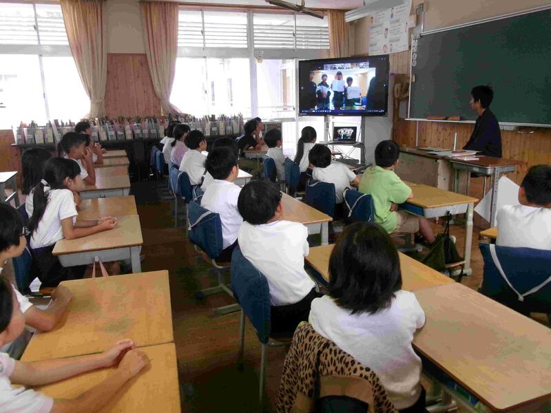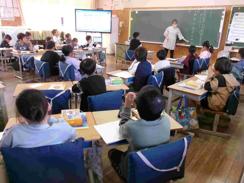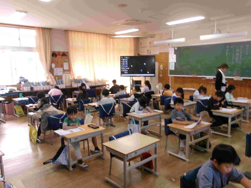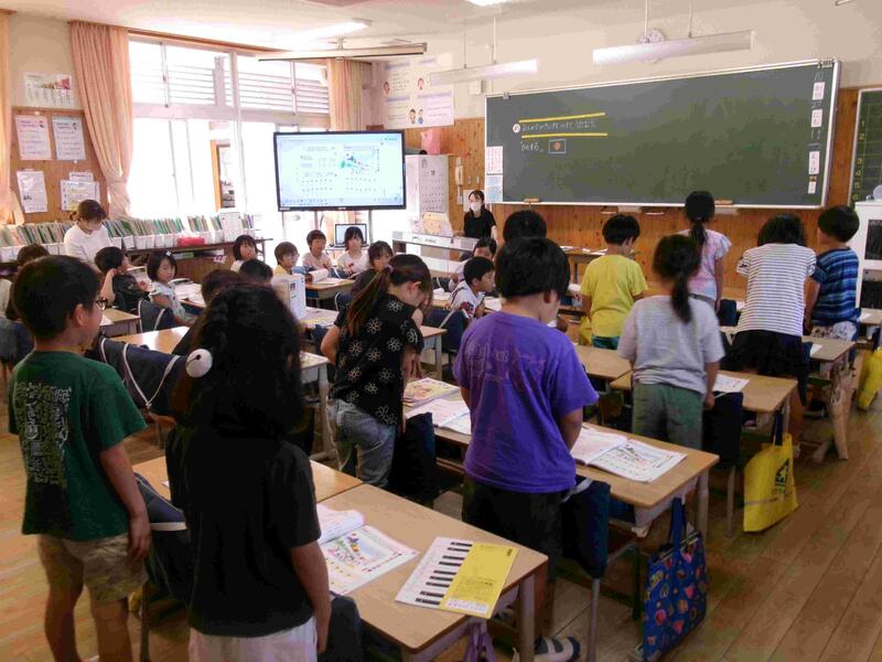 【1年2組は音楽で、「ひのまる」を歌っていました。懐かしさが込み上げてきました。】