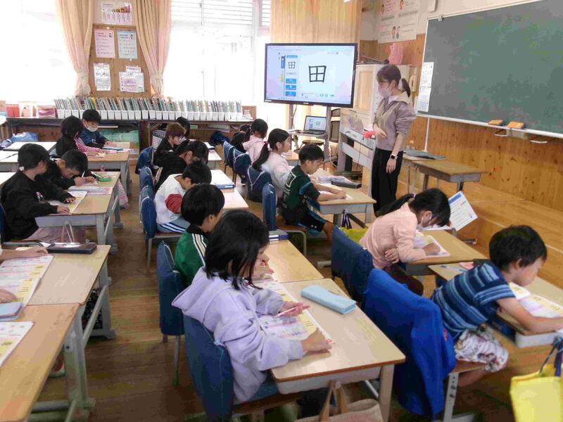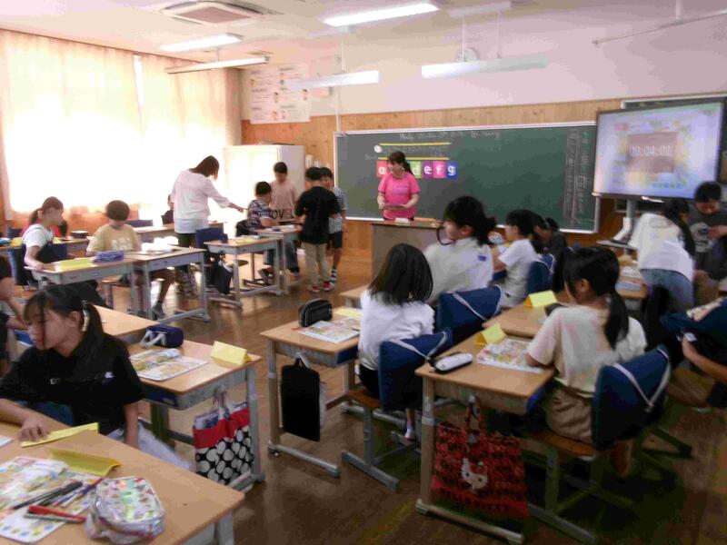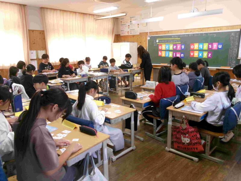 【4年1組は英語活動で、アルフアベットで文字遊びをしていました。】