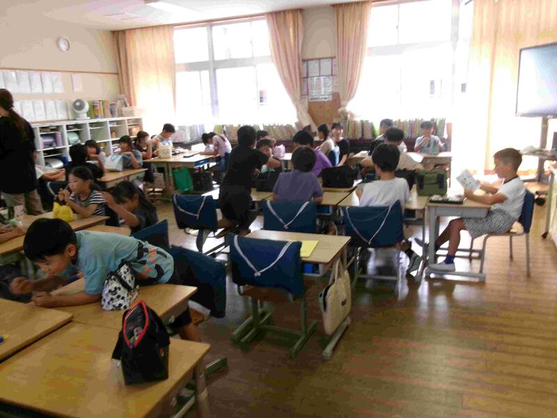 【3年2組の国語です。1年生が読みやすいおすすめの本の紹介を学習していました。」