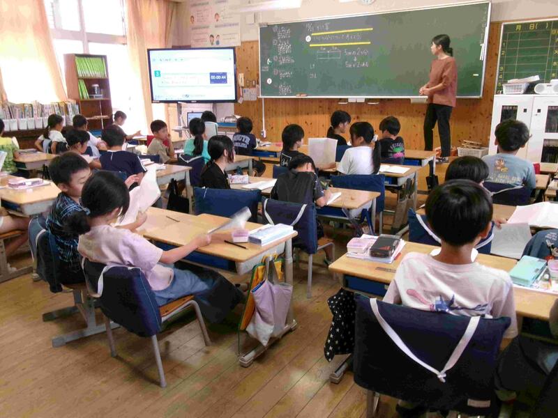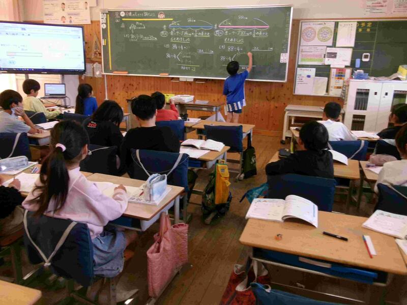 【3年2組の算数の様子です。現在は「分数とわり算」を学習しています。】