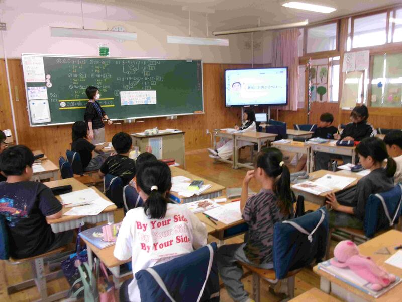 【4年2組は、教室と算数少人数教室に分かれ、「計算のじゅんじょ」( )の中を一番最初に計算することなどを学習していました。】