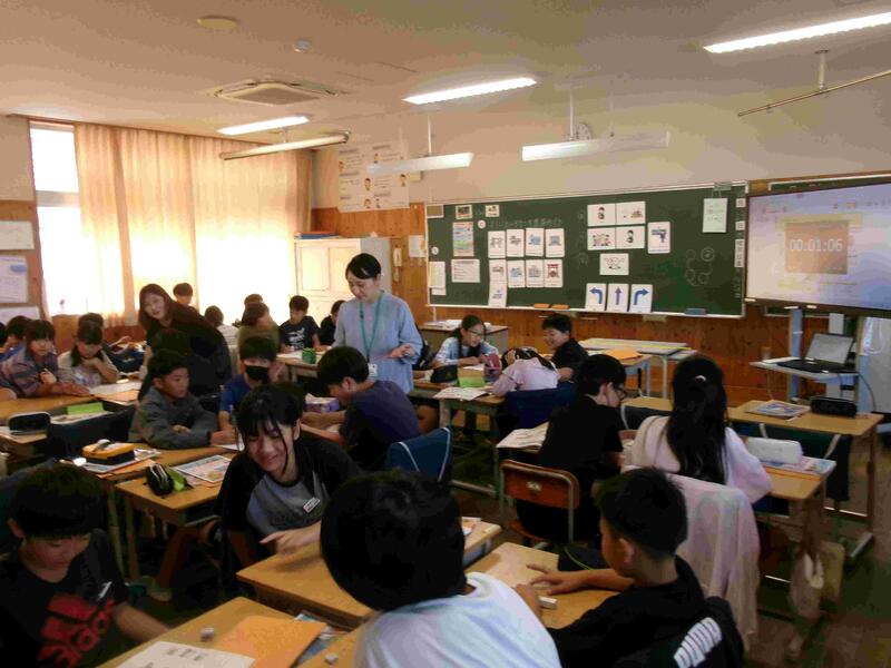 【5年1組は英語の授業で、道順などを英語で言っていました。】