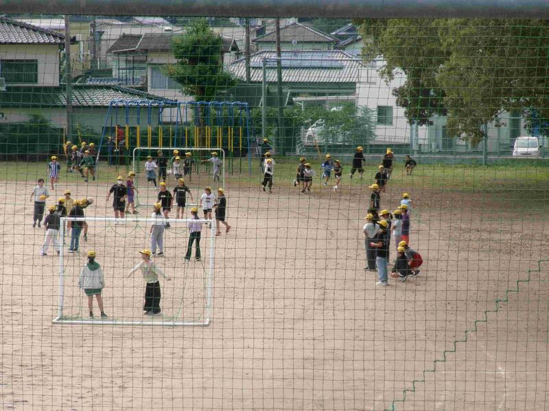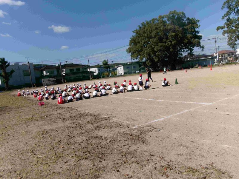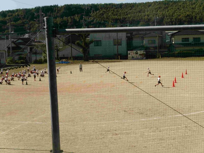 【1年生は運動場で、リレーを楽しんでいました。「がんばれー」という大きな声援が聞こえてきました。】