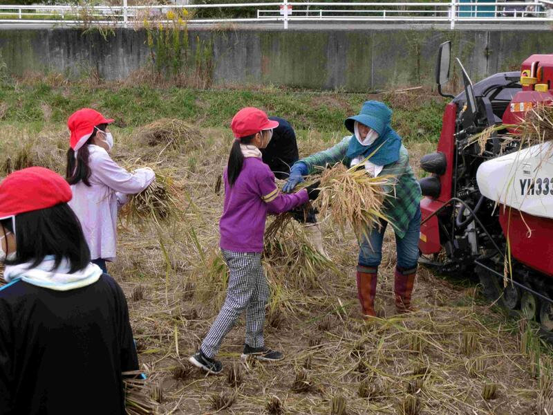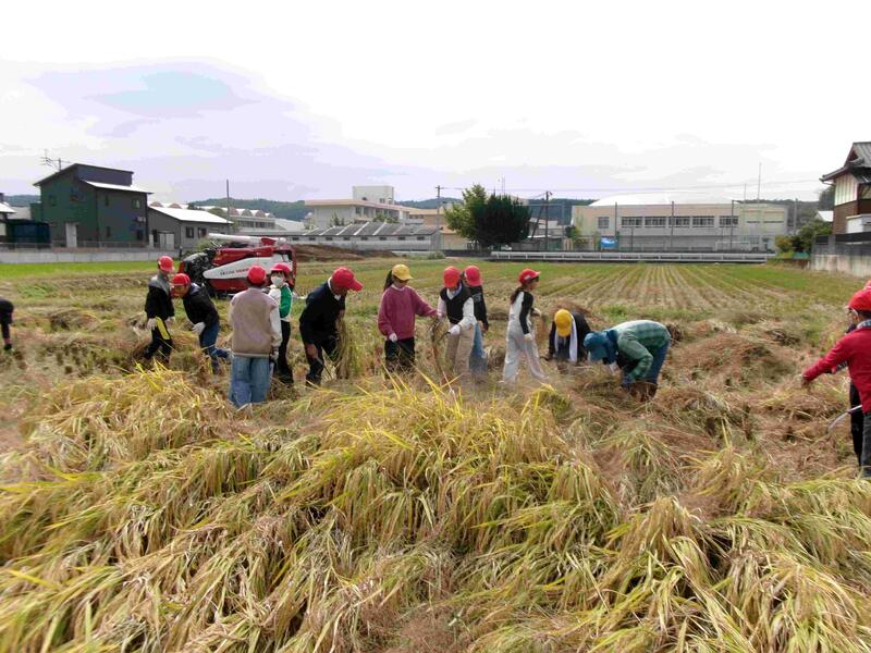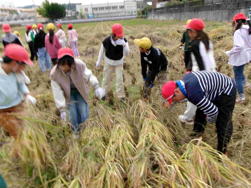 【午後から5年生は稲刈りをおこないました。6月25日に横山様の田んぼをお借りして田植えをしました。それから今日で122日目です。その間の手入れは横山様にしていただきました。ありがとうございます。5年生の保護者の皆様は、稲刈りがどうだったか、子どもさんにお聞きください。横山様お世話になりました。】