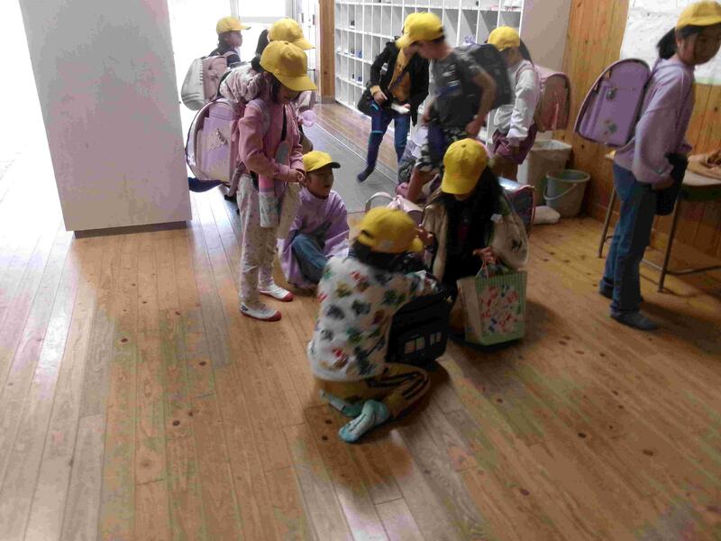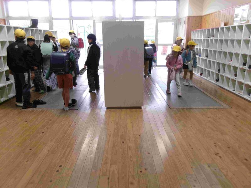 【朝の児童玄関の様子です。長袖を着てくる児童が増えました。】