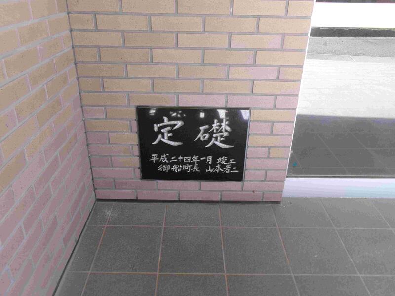 【職員玄関前にある定礎(ていそ)です。新校舎工事完了後、「定礎」と書かれたプレートが設置されました。このプレートの下には、当時の工事関係者や建築図面などが埋め込まれているという話を聞いたことがあります。】