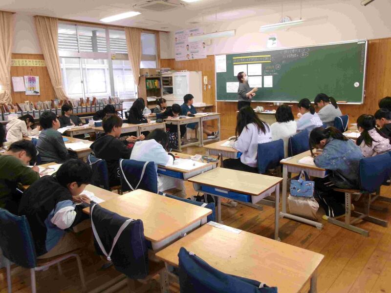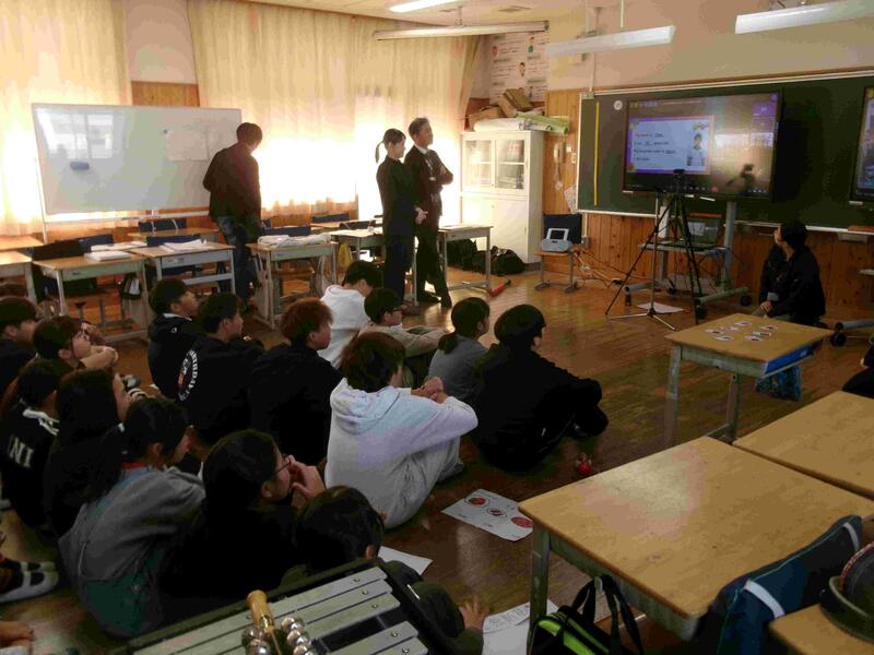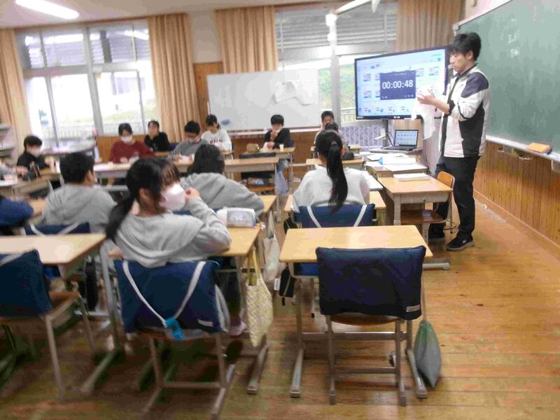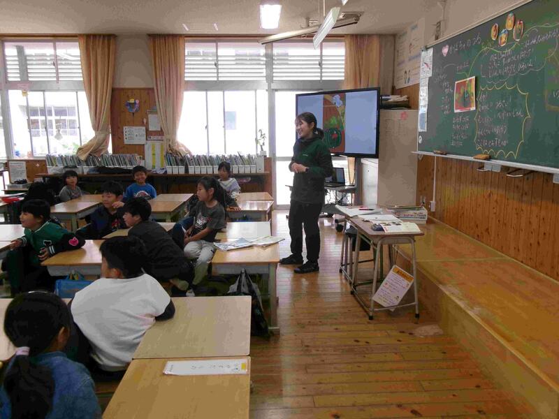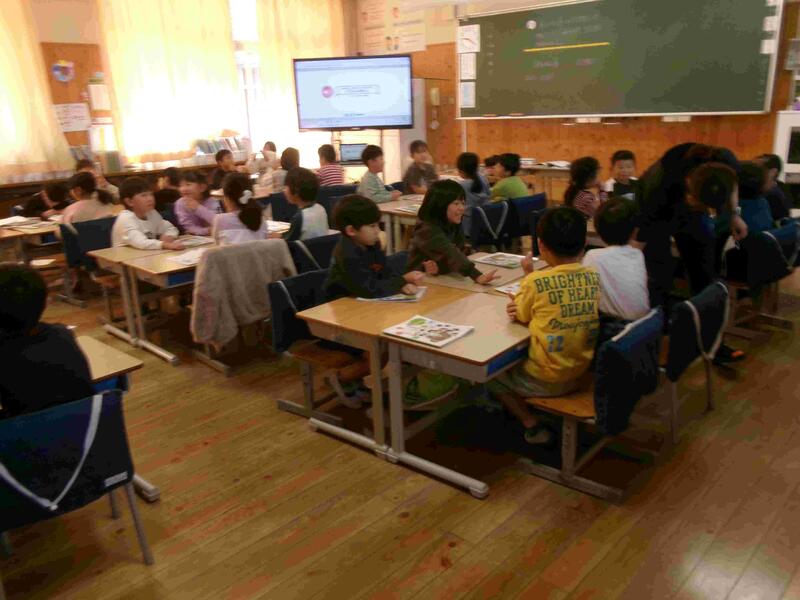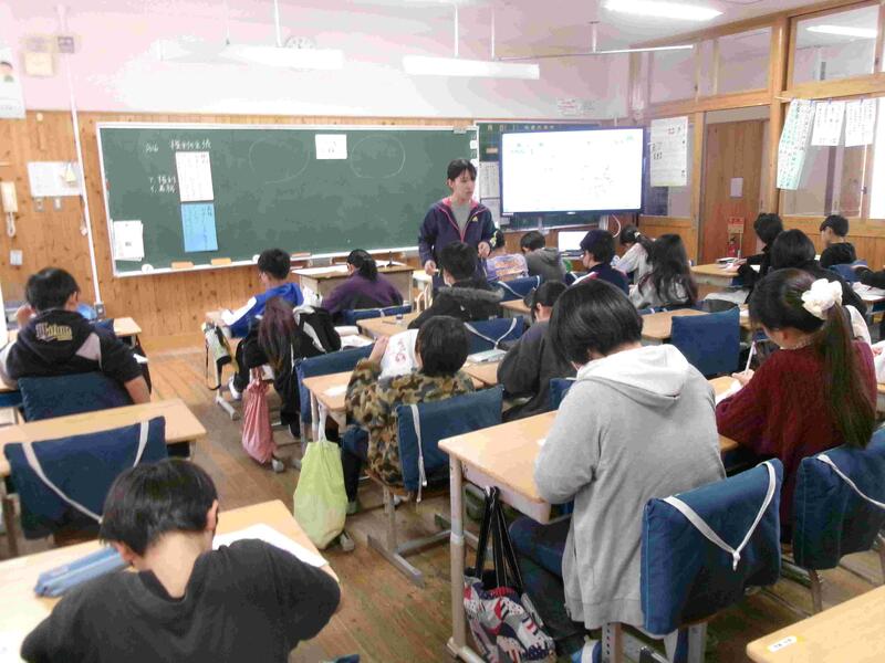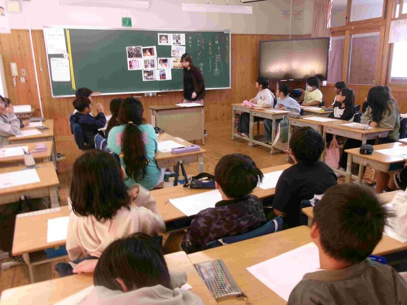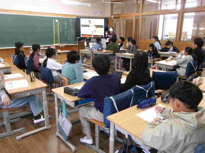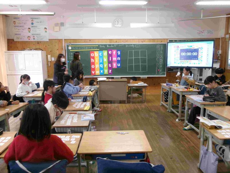 【4年1組は英語活動で、「アルフアベットで文字遊び」をやっていました。】
