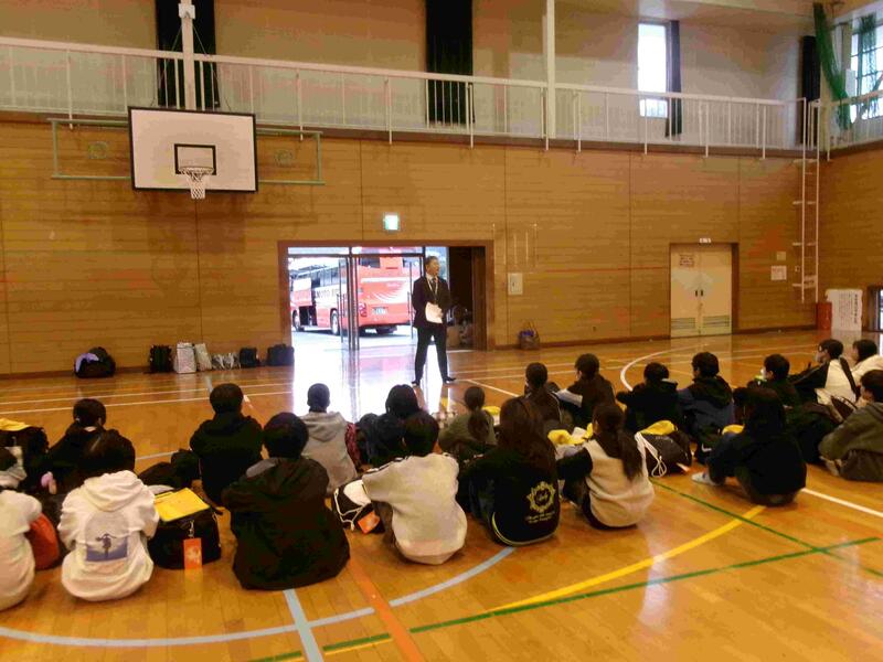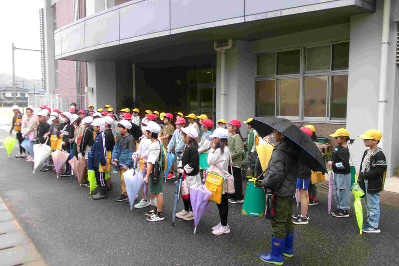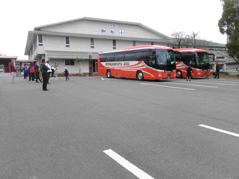 【今日は6年生が長崎方面に一泊二日の修学旅行に出かけました。今日の朝、フェリー会社から、フェリーの機材トラブルのため、本日の運航を中止する連絡が入りました。急遽、高速道路を使って長崎入りするルートに変更になりました。一日目は長崎原爆資料館や平和学習のフィールドワークをおこなう予定です。出発前の6年生に今の気持ちを聞いてみました。「ちょっとドキドキしている。」とか「遠足に行くような気分。」と話してくれました。諸事情で、職員は児童をスマホで撮らないようになっています。修学旅行の写真は、担任からデーターをもらってから、ホームページ上に掲載したいと考えています。よろしくお願いします。本日は出発の様子を掲載します。出発式が午前7時40分から体育館でおこなわれ、その後8時少し過ぎに、御船小を2台の貸し切りバスで出発しました。】