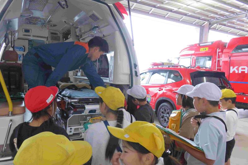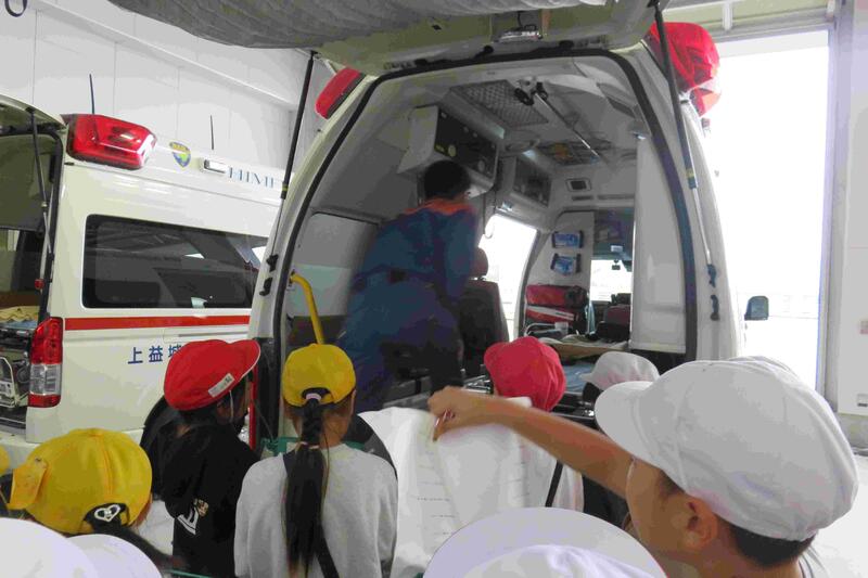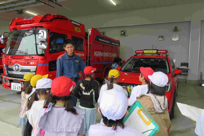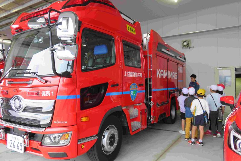 【3年生は9時頃から、上益城消防署に見学に行きました。これまで社会の学習で、防災のことなどを学習してきました。消防署ではどんな話を聞いたか、どんなものを見てきたかなど、3年生の保護者の皆様は、子どもさんに聞いてもらうと幸いです。上益城消防署の皆様お世話になりました。】