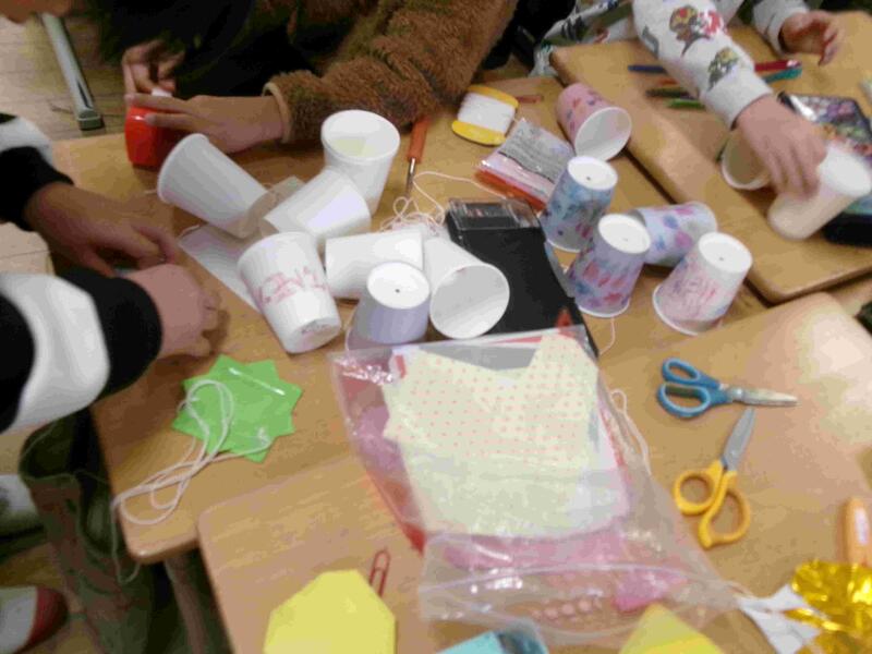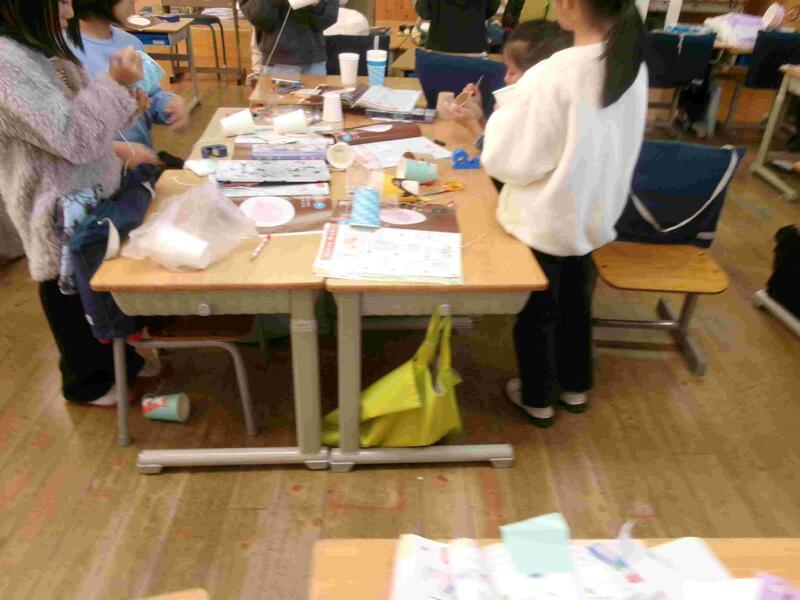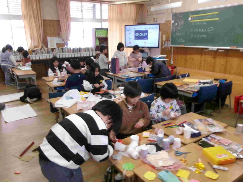 【2年1組:図工で「うごくおもちゃづくり」をやっていました。とても楽しそうでした。】