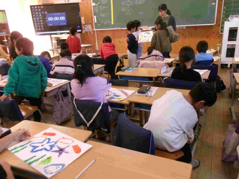 【2年2組:図工「クレヨンでかこう」をやっていました。色がきれいでした。】