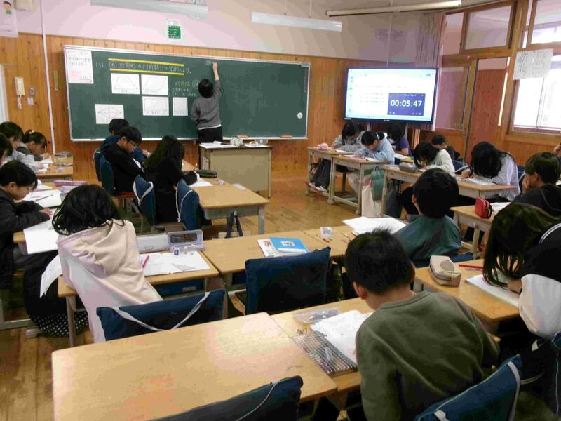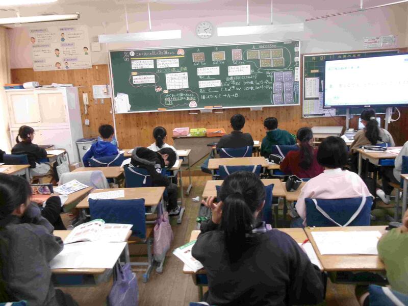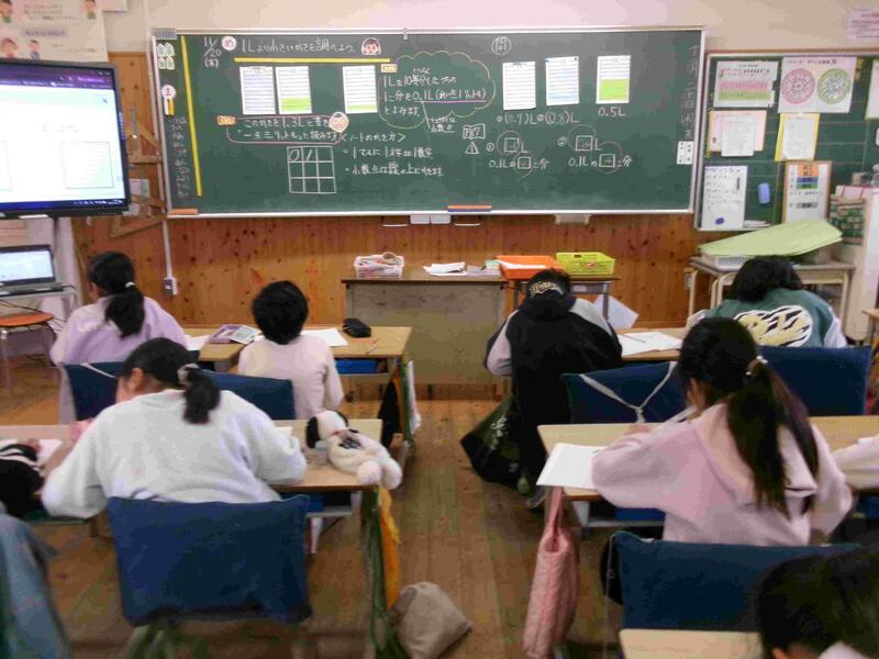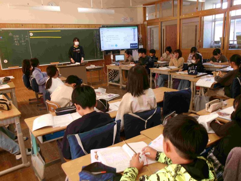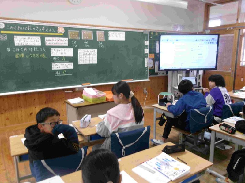 【6年2組:算数で「およその面積と体積」を学習していました。北海道を三角形と考え、およその面積を求めていました。】