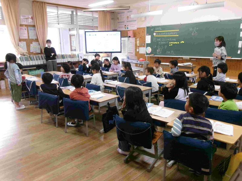 【1年2組:算数「ひき算」17-8=9はどうして9になるかを説明していました。「まず、10から8をひいて2になります。その2と7をたして9になります。」と発表していました。】