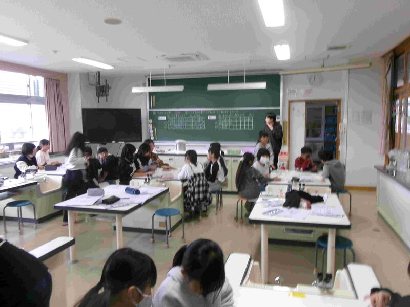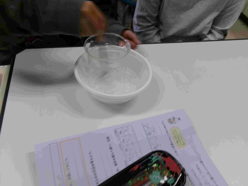 【5年2組は理科で、「ものの溶け方」を学習していました。食塩とミョウバンを使い、水の量や温度の違いによって、溶ける量の違いを実験していました。】