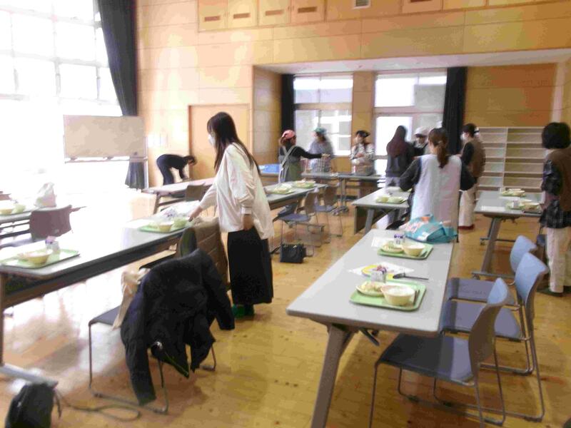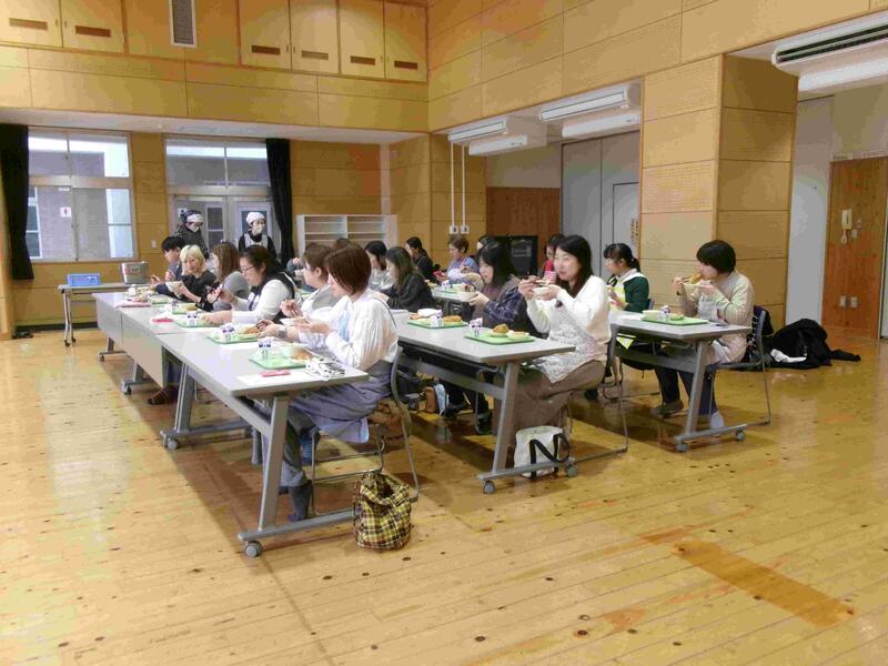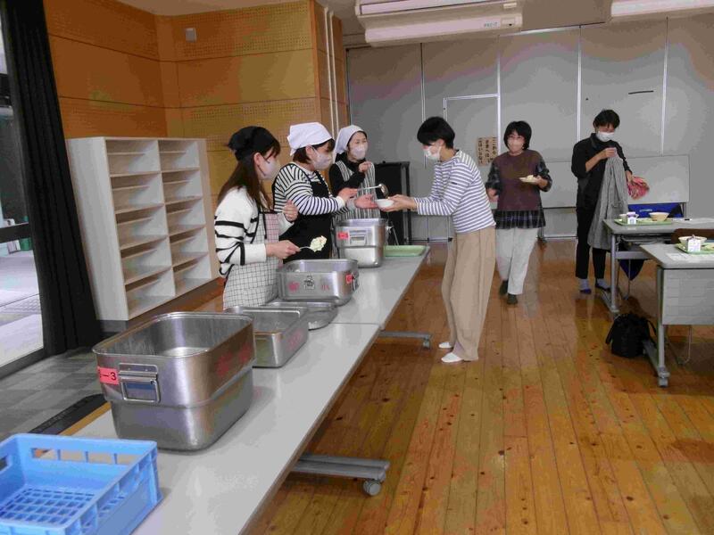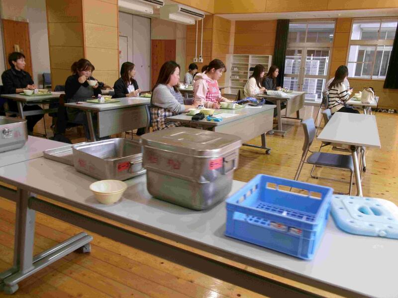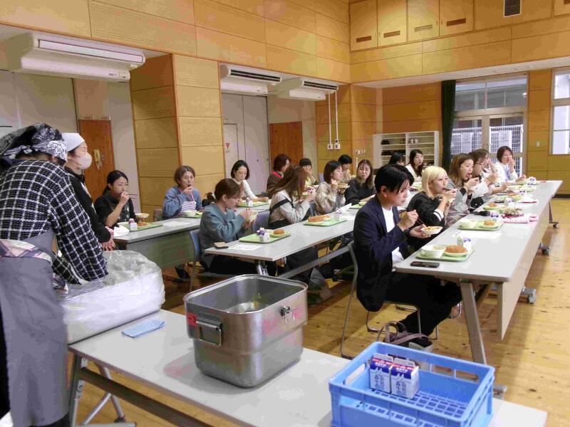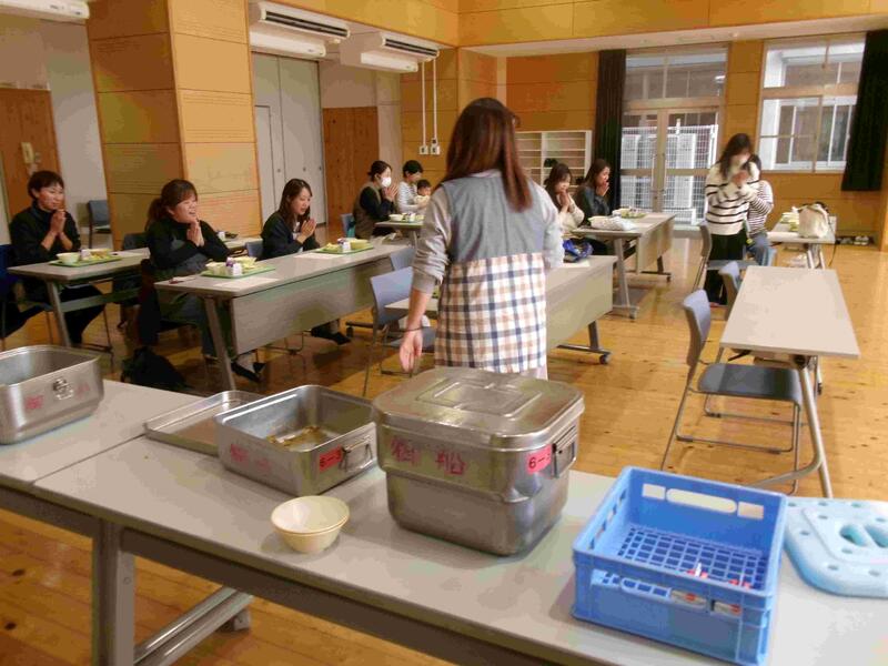 【3年生保護者給食試食会がおこなわれました。交流ホールで、まず栄養教諭西岡先生が、スライドをつかい、給食センターの様子や給食センターで働かれている方々を紹介されました。その後給食の試食をし、最後は、主に3年生の子どもたちが食べている所を見学されました。給食いかがだったでしょうか。御船の給食はとてもおいしいです。】