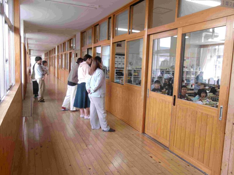 【1年生保護者給食試食会:4校時目、交流ホールで、学校栄養教諭西岡先生が、朝食の大切さや24時間の生活リズム等について話されました。その後給食の試食です。給食はおいしいと言ってもらえましたが、一つちょっと不慣れなことがありました。それは牛乳を飲むときです。家庭では牛乳パックから、コップにつぎ分けたり、ストローを使って飲みます。しかし、学校では牛乳パックをあけ、そこから飲みます。ちょっと苦労されていた方もいらっしゃいました。その後1年生が給食を食べている所を見学されました。】