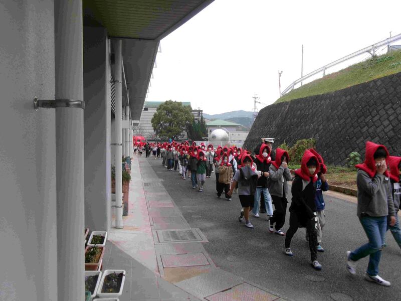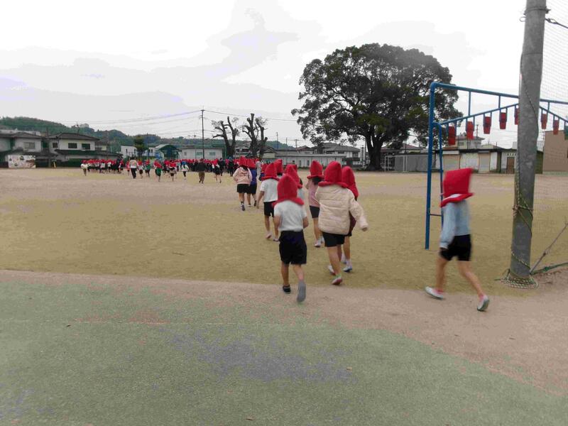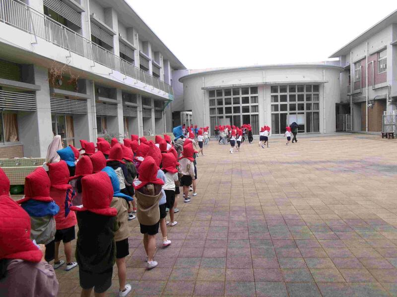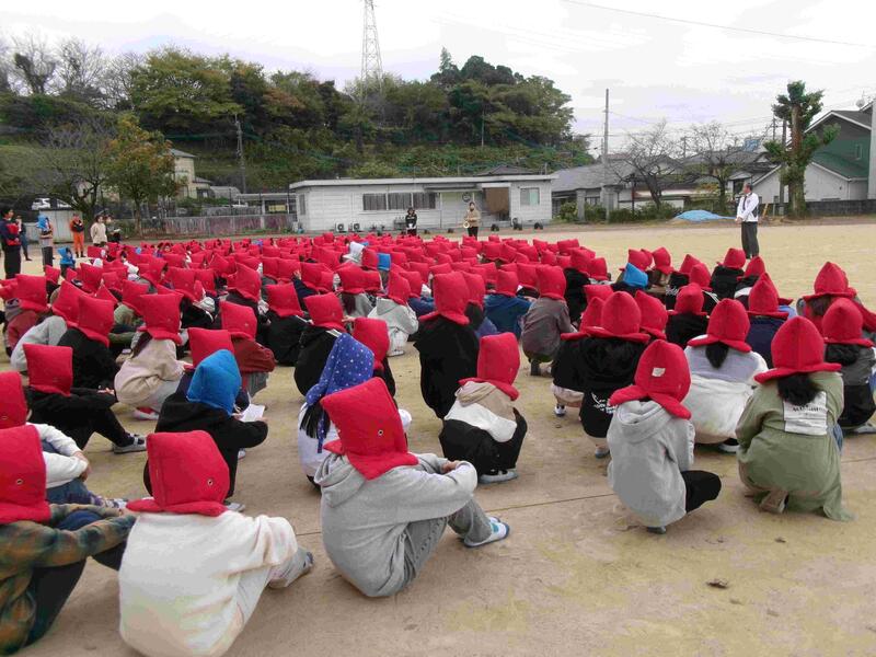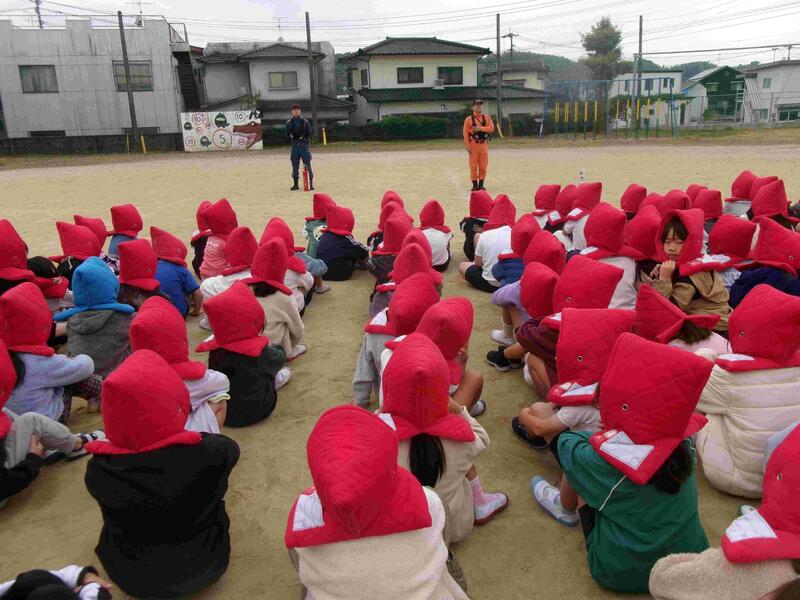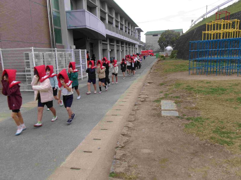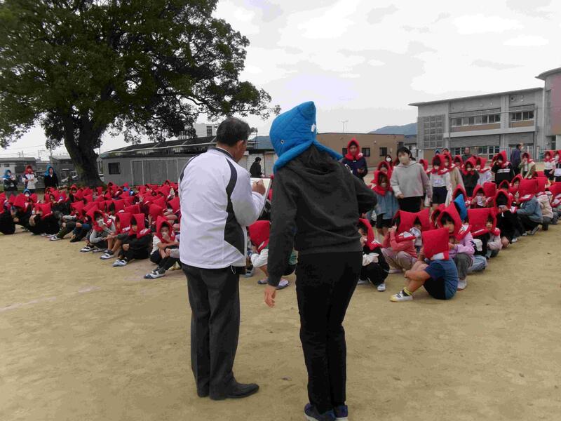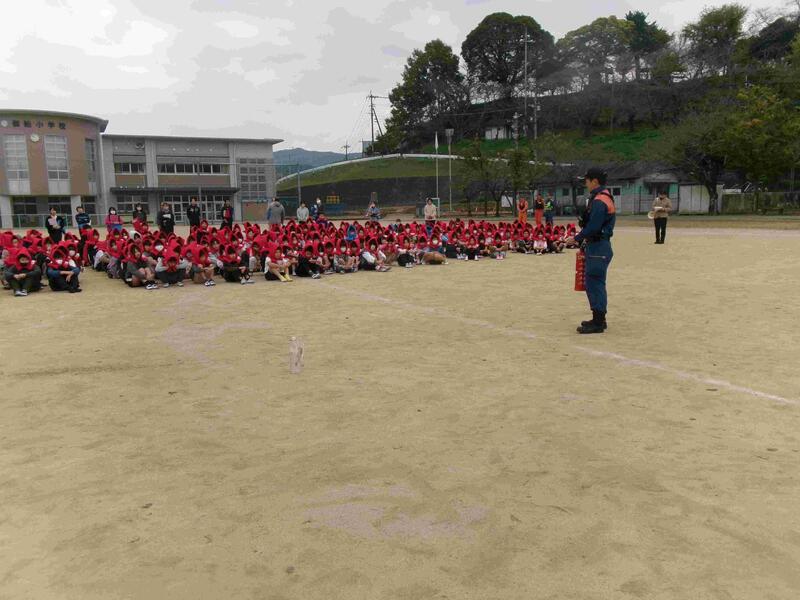 【今日は火災避難訓練がおこなわれました。児童には、火災避難訓練が今日あることは話していましたが、何時間目にあるかは言っていませんでした。2校時目におこないました。上益城消防署の皆様に来校していただき、火災時の注意事項や消火器の扱い方について話していただきました。本日の出火場所は家庭科室です。消防署の方々のアドバイスとして、出火場所から近いクラスをはやく避難させることも大切。教師は大きな声で指示をだすことも大切。空気の流入を防ぐため、窓を全クラス閉めることも大切、等のアドバイスをいただきました。今後に役立てていきます。ありがとうございました。】