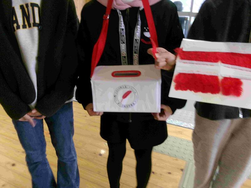 【火曜日、水曜日、木曜日の3日間「赤い羽根共同募金」がおこなわれました。計画委員会が活動してくれました。多くの募金ありがとうございました。計画委員会のみなさん、朝早くからご苦労様でした。】