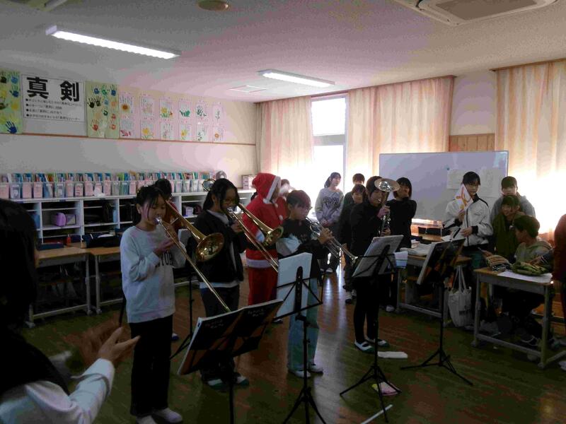 【本日6年2組と3組は、グーグルミートをつかい、台湾の小学生のみなさんと交流をしました。御船小からは、自己紹介、学校紹介、御船町紹介、日本文化紹介等をしました。その中でダンスや剣道を紹介したり、金管バンド演奏「赤い鼻のトナカイ」などもおこないました。】