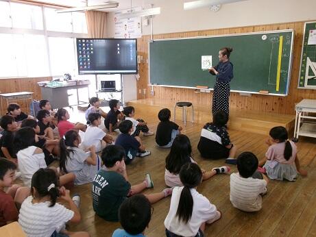 【6年1組は英語で、専科の森先生やALTのアンジェリカ先生と楽しく学習をしていました。】