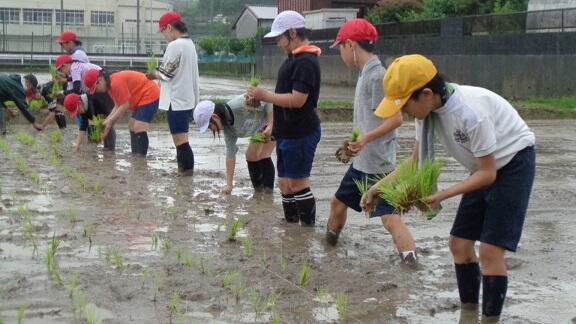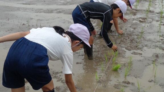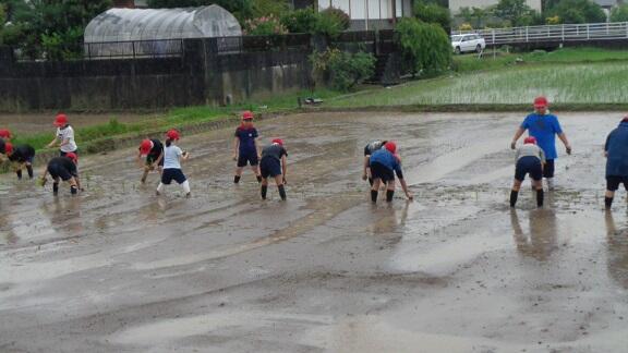 今日は、午前中、5年生が横山様の指導のもと、田植えをおこないました。横山様ありがとうございました。