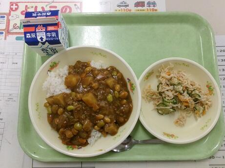 今日の給食:ビーンズカレーライス、切干大根のサラダ