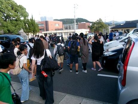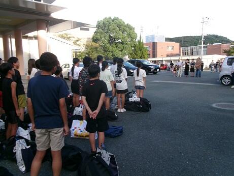 6年生が修学旅行から帰ってきました。予定時間より少し早い午後5時に学校に到着しました。到着後、解散式をおこないました。6年生のみなさん、今日はぐっすり寝て、明日から学習のまとめ等にがんばってください。お疲れさまでした。