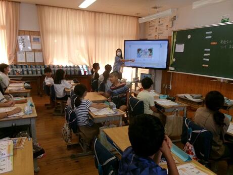 【5年3組:アンジェリカ先生と楽しく英語の学習をしていました。】