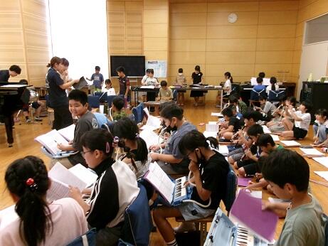 【体育館で結団式をおこない、予定通り午前8時に学校を出発しました。】