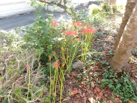 体育館前にやっと曼殊沙華(彼岸花)が咲き始めました。