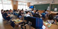 通知表を配っています。1学期の子どもたちの頑張りやよいところを書いていますので、ご家庭でお子さんと一緒に読んでもらえたらと思います。また、ご家庭でもしっかり褒め、励ましてあげてください。成績は2学期と合わせて、2学期の終業式に出す予定です。よろしくお願いいたします。