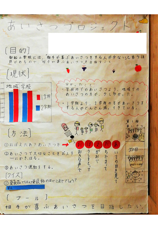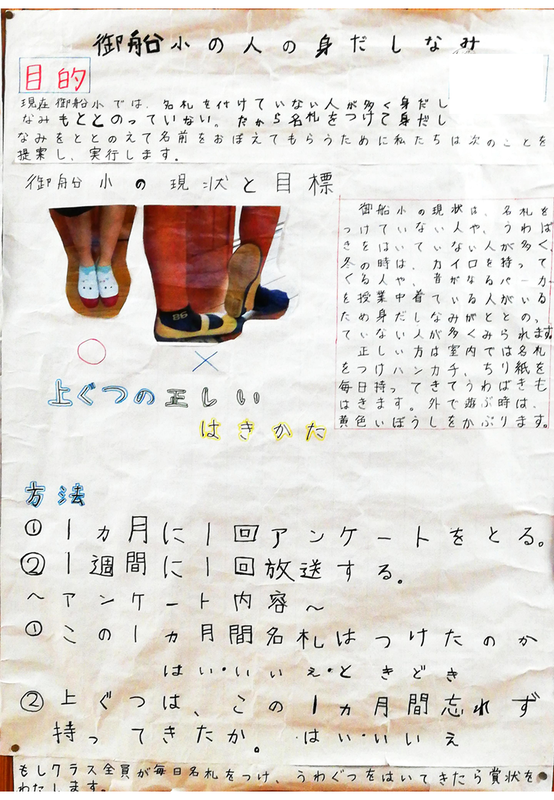 現在、6年生は総合的な学習の時間でネクストリーダープロジェクトに取り組んでいます。御船小学校や御船町をよりよくするために、自分たちで課題だと思うことを改善する方策を提案するためにポスターにまとめました。先日の学校運営協議会では、地域の方にも発表を見ていただきました。今後は実際に取り組んでいきます。