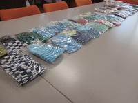 JAの婦人部の方々から、マスクを寄贈していただきました。カラフルな布や今の時季にぴったりなさわやかな布でできた、すてきなマスクでした。なんと、このマスクはすべて手作りだそうです。しかも、町内の学校すべてに寄贈されているとのことで、さらに驚きです。