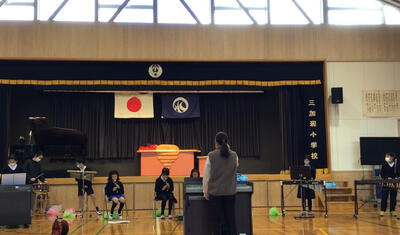 昨年度に続き、今年度も音楽クラブ(4年生~6年生)の自主発表会を昼休みに体育館で行いました。児童の8割~9割の子供たちが、発表会の鑑賞を行いました。1つめが、鬼滅の刃の「炎(ほむら)」の合奏です。2つめが、YOASOBI「夜を駆ける」の曲似合わせて創作ダンスを踊りました。どちらとも、クラブ活動の時間と昼休みの時間でよく仕上げました。本日の演奏動画は、数日後に期間限定で、HPにアップを予定しています。後日、HPか安心メールでお知らせします。