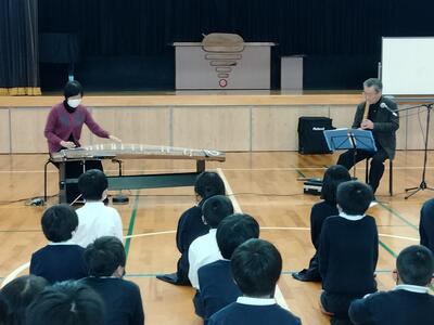法立寺(板楠西)の藤井山ご夫妻に来校いただきました。4年生以上を対象に体育館で行いました。宮城道雄作曲の「春の海」やアニメ「鬼滅の刃」のテーマ曲など数曲、演奏されました。琴と尺八の音が体育館・私たちの心に響きました。ありがとうございました。
