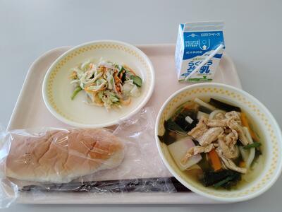 きつねうどんの油揚げは、甘辛く味つけがしてありました。また、カツオと昆布で出汁がとってありましたが、とても風味がよく美味しかったです。ごぼうナッツサラダには、「さきいか」が入っていて、味も食感もよかったです。ミルクパンはやわらかく甘味を感じました。